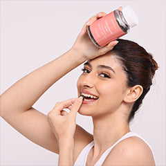 Daily supplement for acne sufferers formulated with prebiotics, probiotics, vitamins, minerals, and antioxidants.
